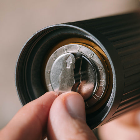 Lille og slank håndkværn med italienske koniske knive i og med 60+ indstillinger i finhed. Kna kværne alt fra espresso til stempelkande.